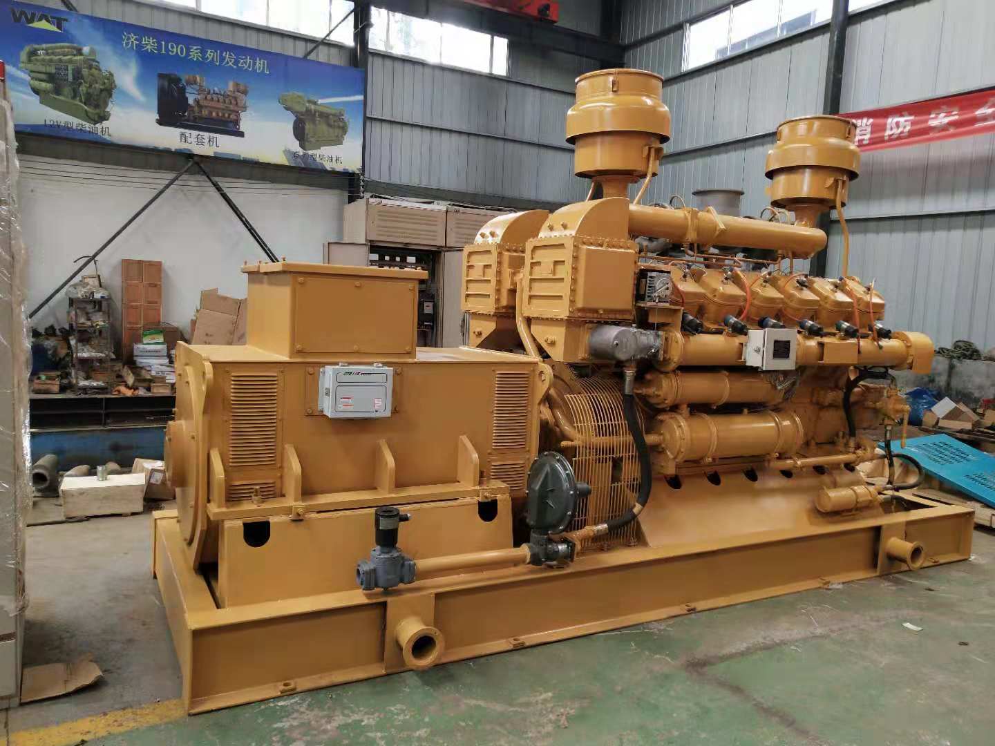 Natural gas power generation units are based on natural gas LPG、WTG、 A ignition gas engine that uses high calorific value gases such as associated gas from oil fields as fuel. On the basis of non supercharged models, a supercharging system and an intercooler system have been added. The cooling system adopts a high and low temperature cycle separation method, with high temperature cycle cooling the cylinder, body, cylinder head and other high-temperature components, and low temperature cycle cooling the supercharged gas, air and oil cooler.