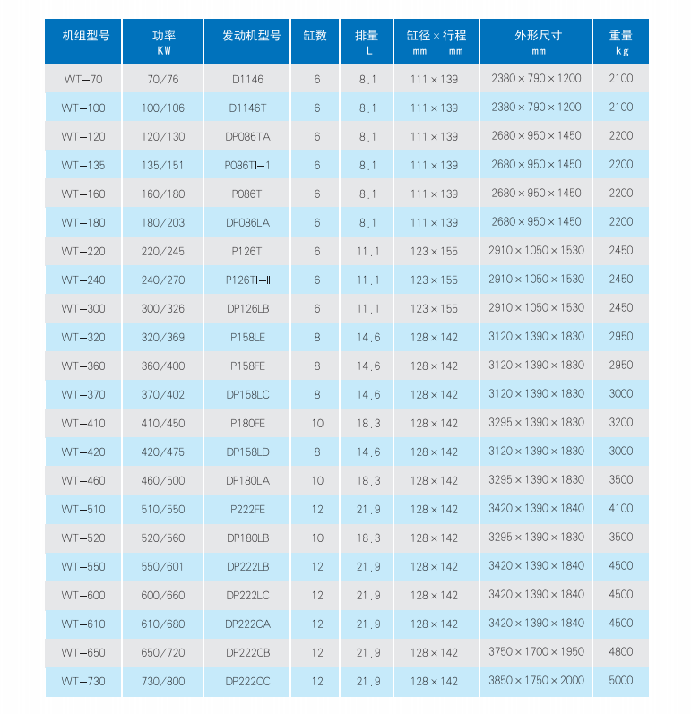 Power range: 50-600KW. The Doosan generator set is recognized worldwide for its small size, light weight, strong resistance to special loads, low noise, low economic reliability, and other characteristics. Its operating quality and waste efficiency are excellent